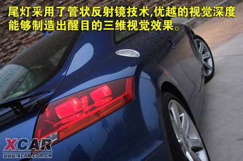 除此之外,新TT在尾灯上采用了管状反射镜技术。得益于其优越的视觉深度,尾灯能够制造出醒目的三维视觉效果,矩形的灯罩使得后面的驾驶员看到的是立方形的光束。