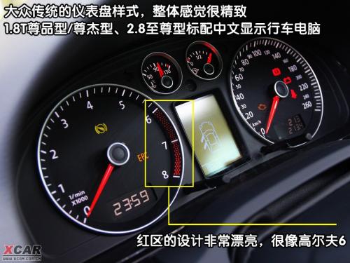 清晰简洁的仪表板造型设计也源自大众最新的设计元素,转速红区和指针样式与第六代高尔夫几乎一模一样,改为白色显示的中央多功能液晶显屏还可以读取包括胎压、油耗、里程等常用信息。
