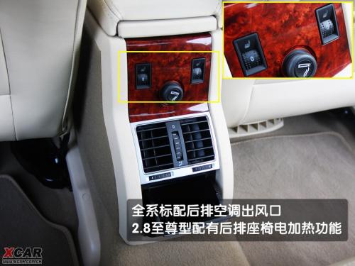全系标配的自动空调,还可根据车内外环境自动调节车内温度、湿度、风量和风向,并具备自动除霜和花粉过滤功能。不过,作为2.8升 V6的高配版本都没有配备分区温度控制,让人略感遗憾。