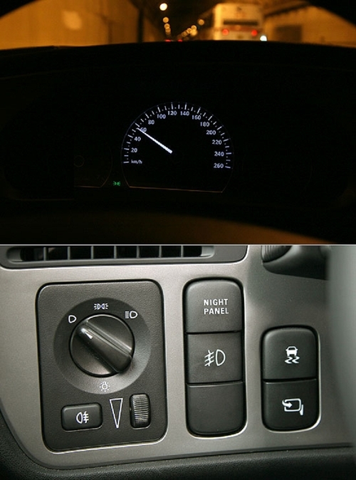 9-5 Griffin Edition就如同其它的Saab车款一般,配置了独特的夜用仪表设计,驾驶人只需压下NightPanel按钮,仪表板内便独留时速表进行作动,让车主能排除其它的行车信息,将注意力集中于车速与前方路况。