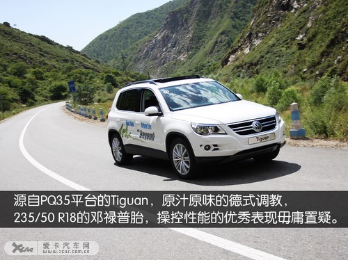 看完静态,我们再来看看进口Tiguan在行驶性能方面的表现如何。源自PQ35平台的Tiguan,在公路操控性能的优秀表现毋庸置疑。欧系车的悬挂阻尼本就较为硬朗,更何况进口Tiguan这种原汁原味的德式调教,235/50 R18的邓禄普轮胎能够提供充足的抓地力,想要在山路中逼出响胎非常困难,就算是迈腾来了也很难分出个孰高孰低。