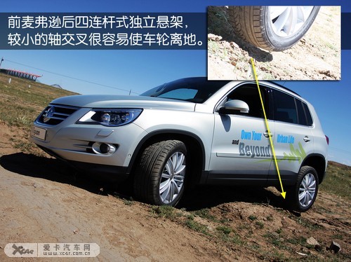 在实际使用中虽然优秀的接近角和离去角让我们免去了托底之忧,但是前麦弗逊后四连杆式独立悬架,较小的轴交叉很容易使车轮离地。EDS电子差速锁的介入也不够及时,油门给大了车轮会剧烈空转,油门给小了输出的扭矩又不足以脱困。这种情况在城市型SUV之中较为普遍,而Tiguan的越野表现介乎于奇骏与RAV4之间。