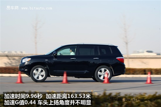 汉兰达加速测试中,0到100公里/小时,加速时间为9.96秒,加速距离为163.53米。我们认为还是不错的,毕竟接近2吨的重量。从加速曲线图上看,汉兰达的低扭表现不错,比较平稳。行驶中,汉兰达油门反应很灵敏,这也使得它的起步、超车易如反掌。