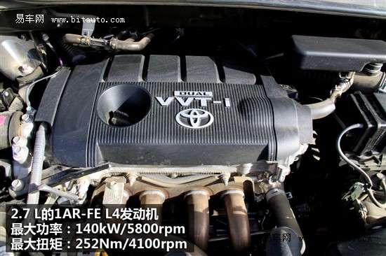 汉兰达提供了两种动力总成:2.7 L的1AR-FE L4发动机以及3.5 L的2GR-FE V6发动机,分别代表了丰田在V型六缸和直列四缸发动机领域的领先水平。而2.7L 1AR-FE L4发动机则是丰田最新开发的中高排量直列四缸发动机,强劲性能在丰田四缸发动机中首屈一指。其最大功率为140Kw/5800rpm,最大扭矩为252Nm/4100rpm,具有较为明显的中低转速大扭矩性能,六速手自一体变速箱与这款发动机形成了很好的匹配,特别是在2000转左右,就能达到较高的扭矩,在中低速具有较佳的加速性能,非常适合城市驾驶。